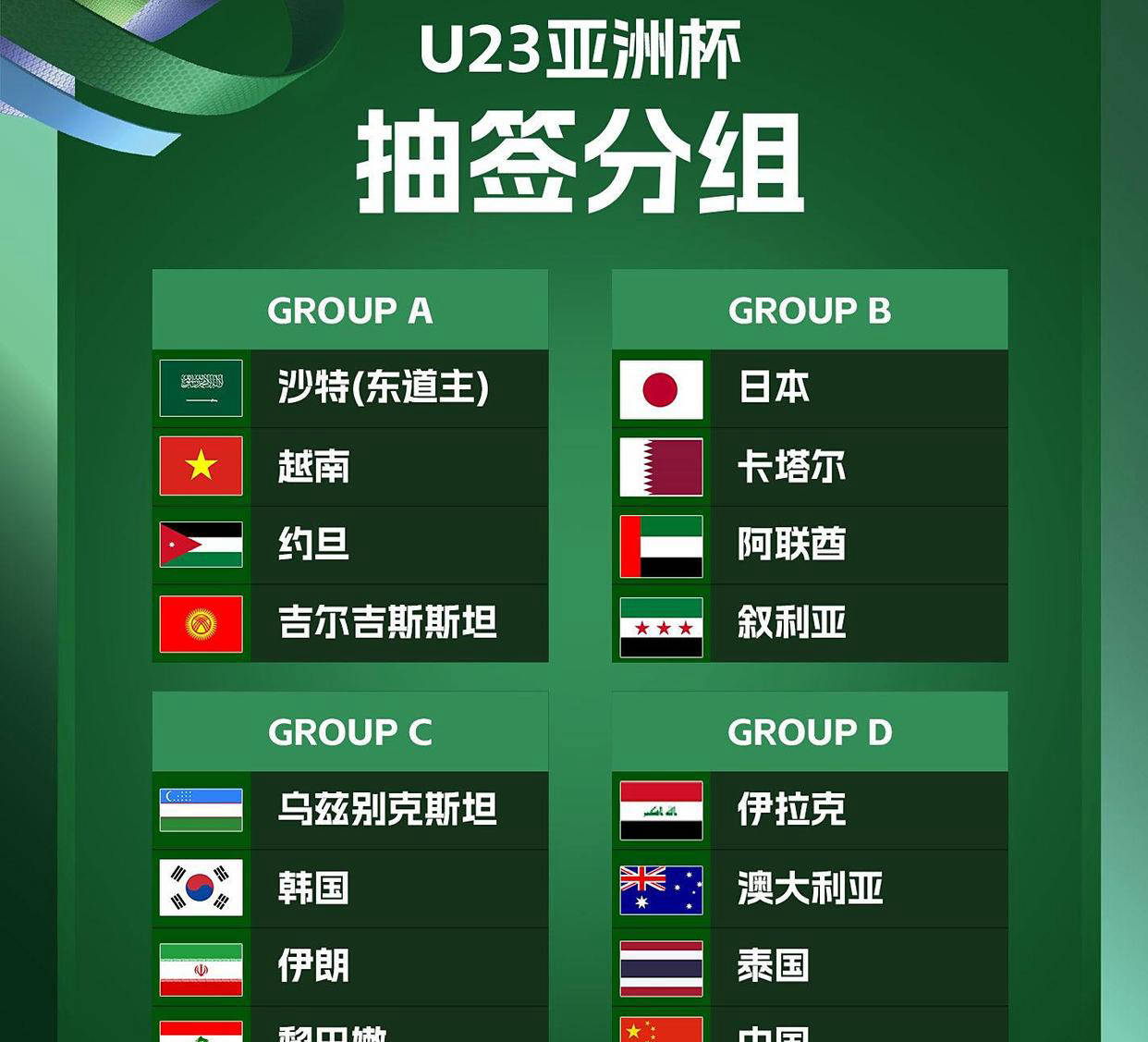 根据计划,亚足联于今年10月2日进行了分组抽签,而由沙特承办的决赛阶段将于明年1月7日至25日举行。赛事以过去3届U23亚洲杯的表现作为分档依据,中国队排名第13位,被划入第4档。