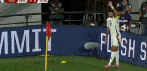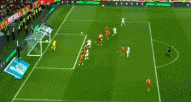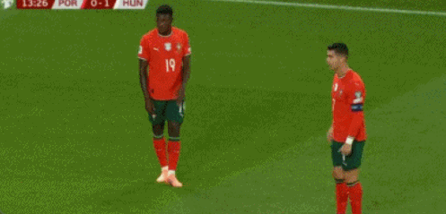 第14分钟,葡萄牙获得前场任意球机会,随后门德斯与C罗进行任意球战术,最后前者直接把球送对手。