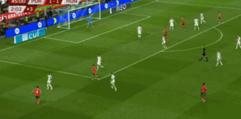 第45+3分钟,门德斯送出传中助攻,C罗轻松推射破门,上演梅开二度,帮助葡萄牙2-1完成反超。