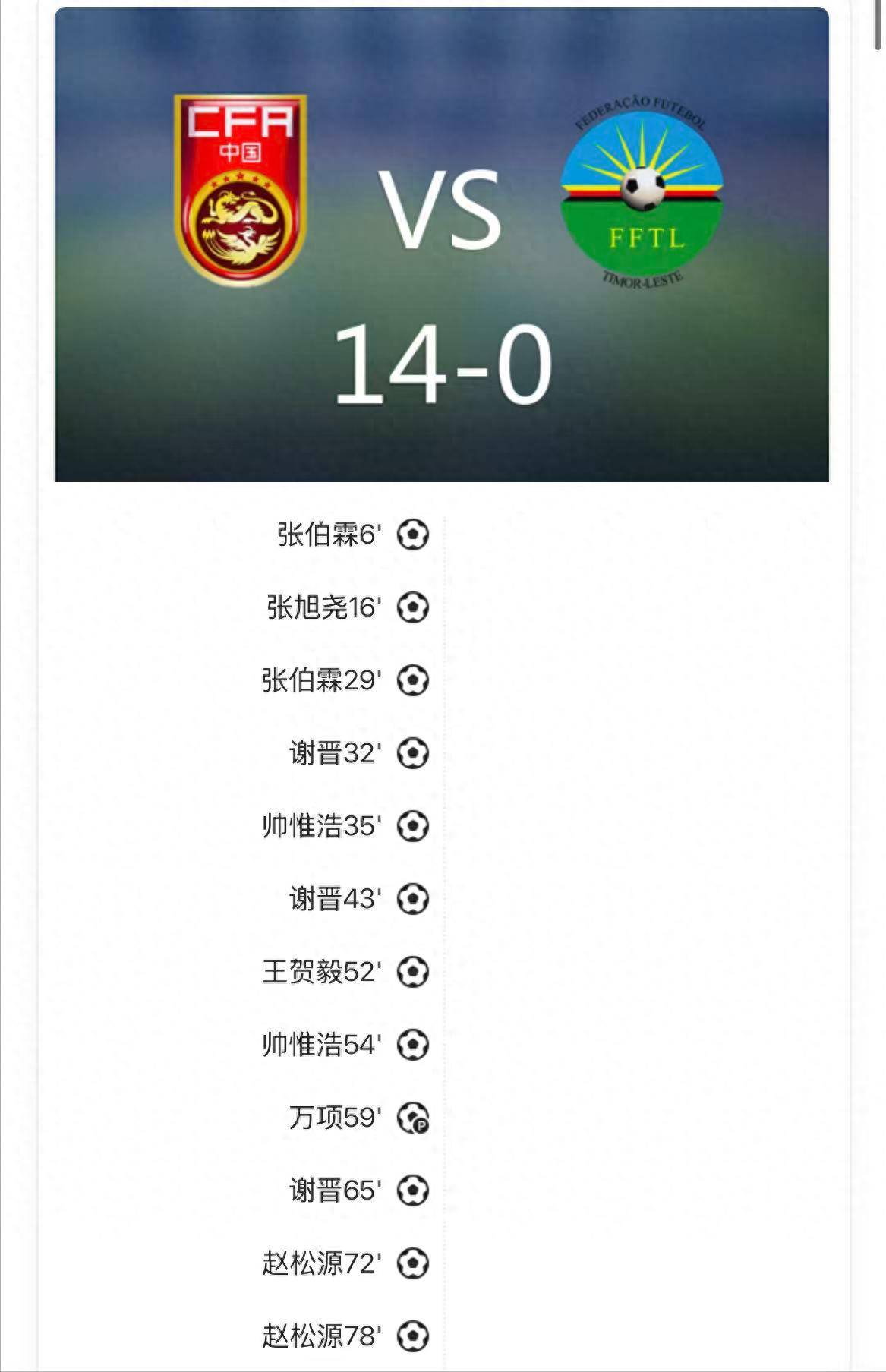 - 14-0!国足少年军踢出史诗级战役东帝汶