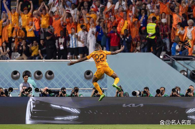 荷兰队对阵美国队的比赛中,右翼卫邓弗里斯用左脚打入一记凌空抽射,帮助橙衣军团3-1锁定胜局,进球后他开心地跃起庆祝。