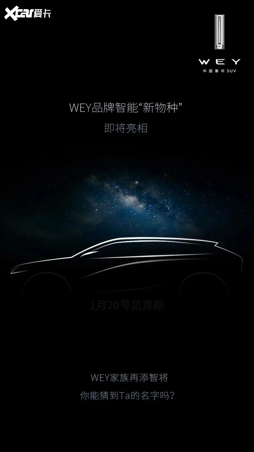 日前,WEY品牌在官方公众号上发布了一张图片,预示着1月20日将会亮相一款全新的SUV。尽管目前还没有公布车型的准确名字以及相关情况,不过我们还是可以从网上曝光的情况略窥一二。